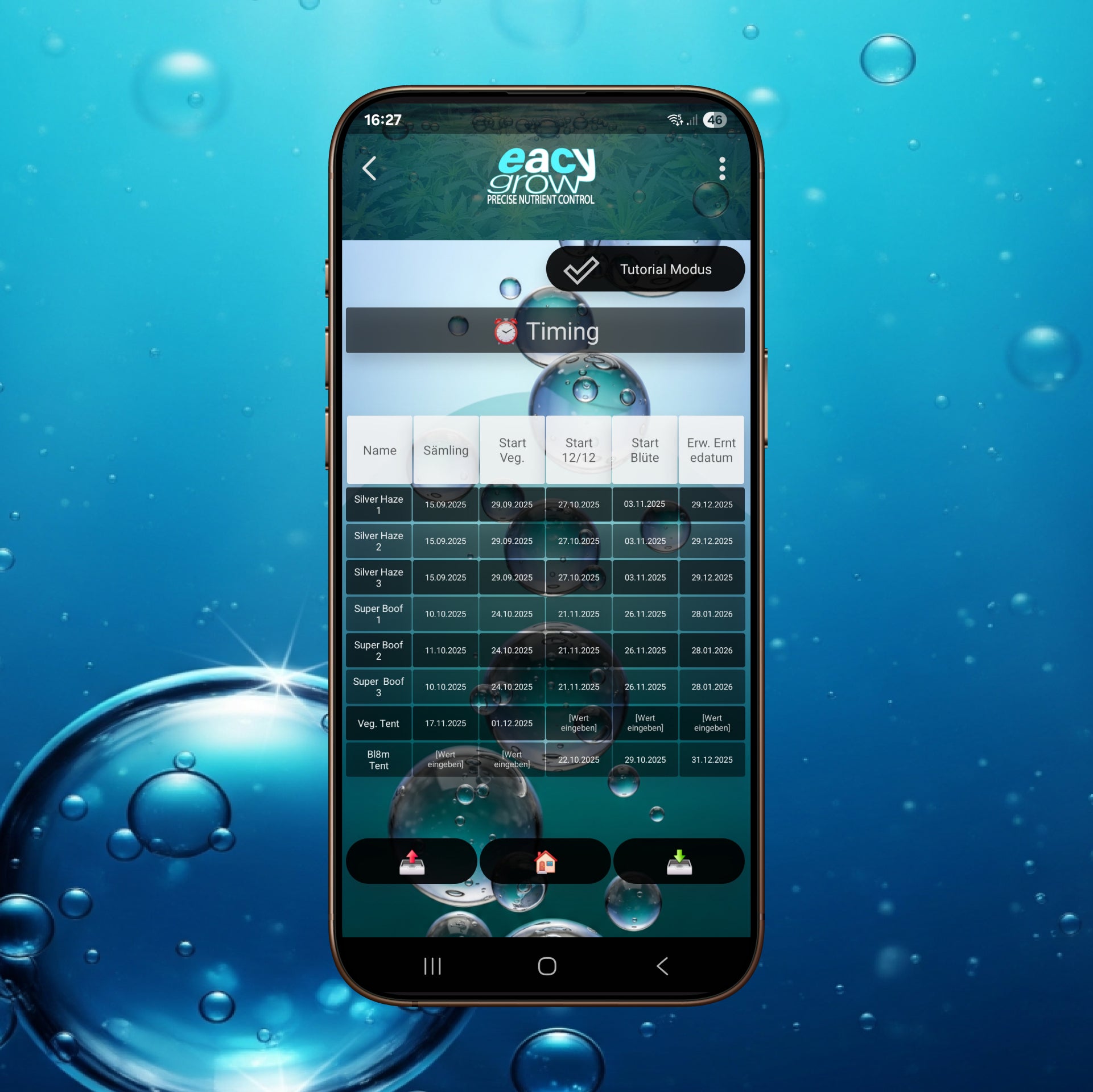 eacygrow hilft Dir dabei Deine Pflanzen zur richtigen Zeit auf dem perfekten EC-Level mit den optimalen N-P-K und Cal/Mag Werten & Verhältnissen zu halten. Schnelle individuelle Anpassungen im Falle eines Mangels oder bring Deine Pflanzen an ihre Grenzen. Jetzt liegt es wirklich in Deinen Händen.
